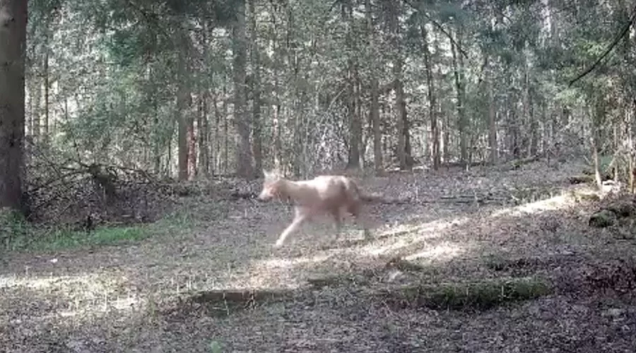 Пробегающий волк ненадолго попал в кадр фотоловушки, установленной в заповеднике «Калужские засеки».