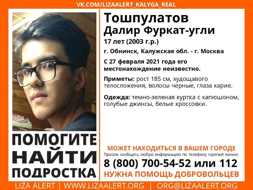 Подросток может находиться в населенных пунктах Калужской области, а также в Москве.