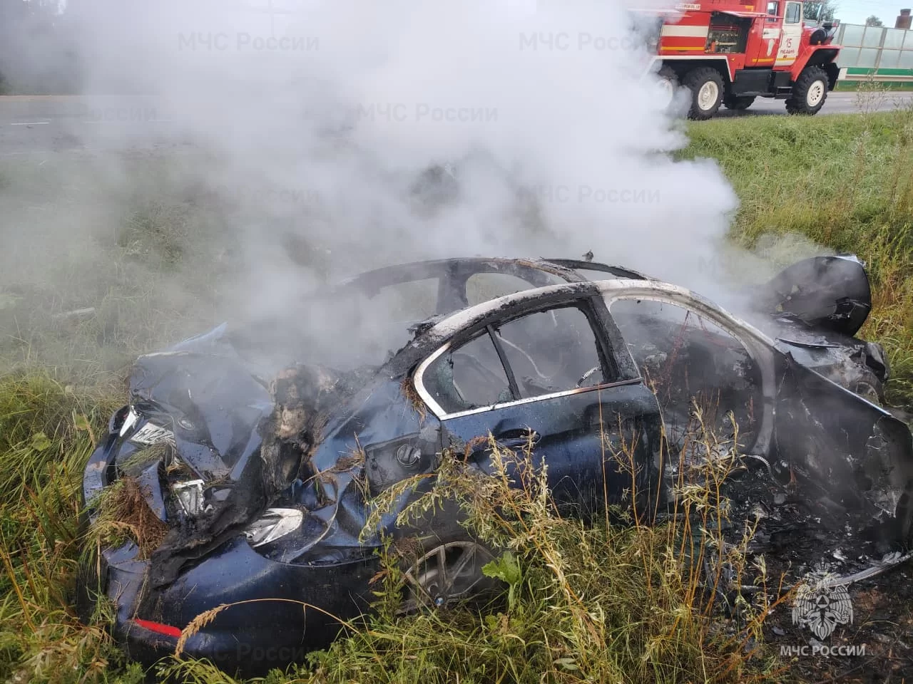 Около семи утра в районе деревни Дошино водитель автомобиля BMW потерял управление над транспортным средством. В результате иномарка съехала в кювет, перевернулась, а после загорелась. На данный момент известно об одном пострадавшем.