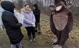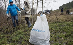 После группового фото и многочисленных селфи с Хохулей волонтеры довольно быстро собрали в мешки мусор с берега Резвани.