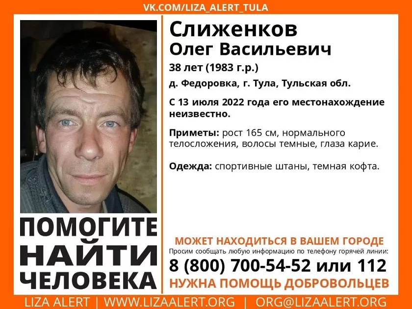 Мужчина проживает в деревне Фёдоровка Тульской области, но может находиться в нашем регионе. Его местонахождение неизвестно с 13 июля.