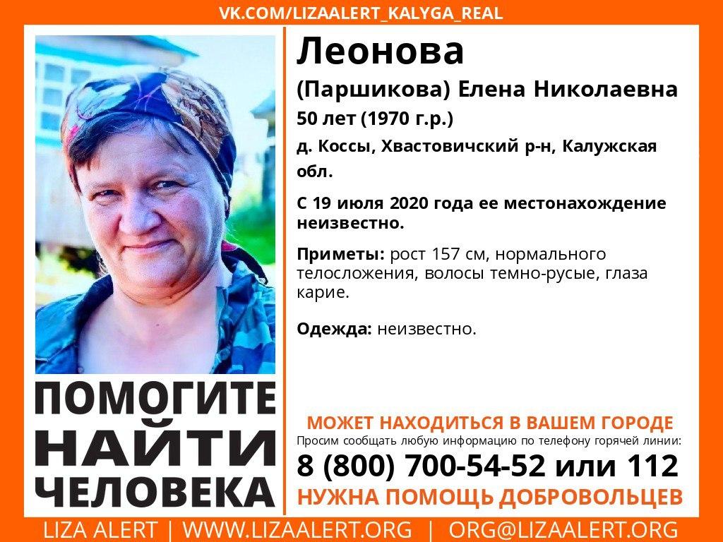 Елена Леонова, 50 лет, пропала из деревне Коссы Хвастовичского района Калужской области еще 19 июля. Уже почти два месяца о ней нет никакой информации.