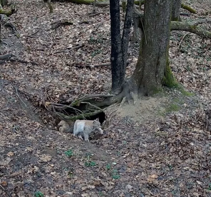 В Калужской области фотоловушки запечатлели редкую рысь с детенышами