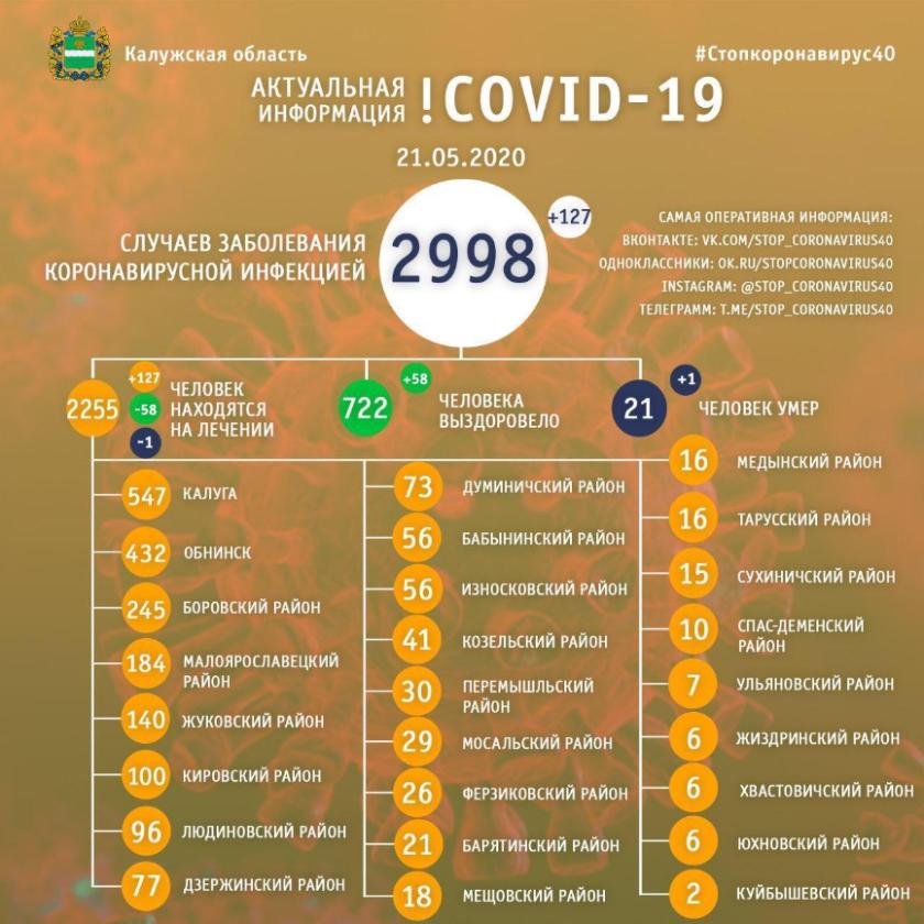 Печальная статистика смертей за сутки выросла, умер еще один пожилой мужчина из Калуги. Общее число пациентов, не справившихся с COVID-19, теперь 21.