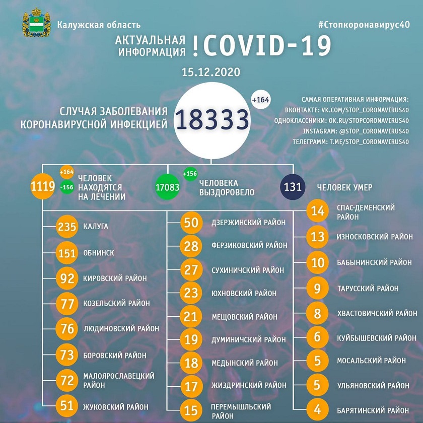 На лечении находятся 1119 жителей Калужской области.