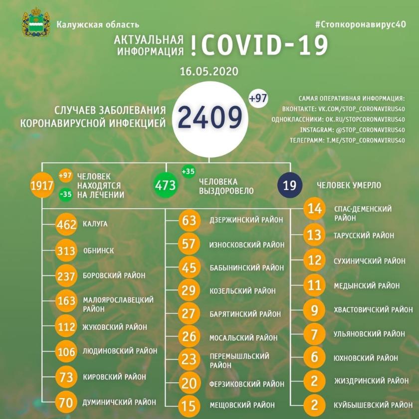 Согласно этим данным, по состоянию на 16 мая в регионе отмечено 97 новых случаев заболевания коронавирусной инфекцией.