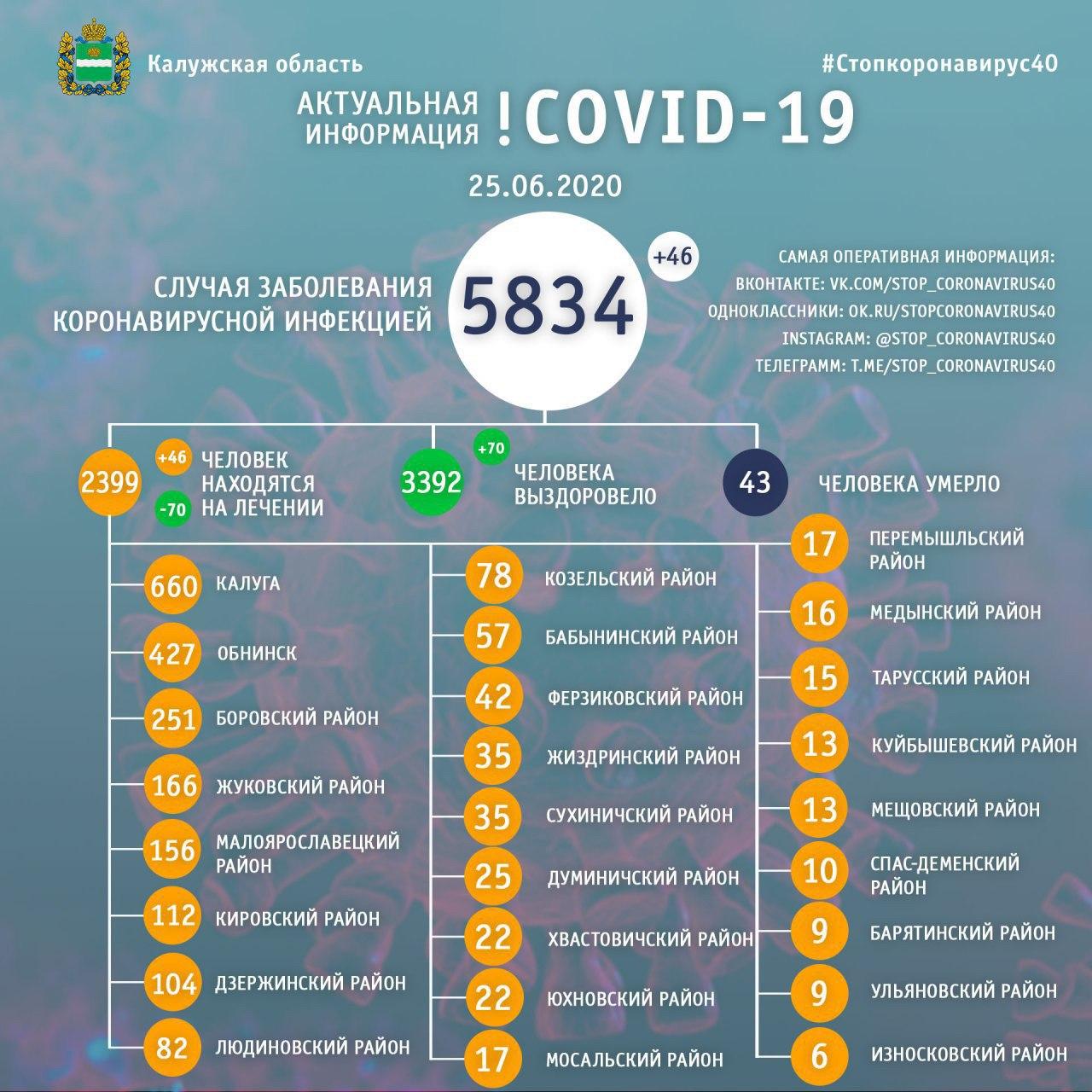 В регионе подтверждено 5834 случая заболевания, из них 46 – за последние сутки.