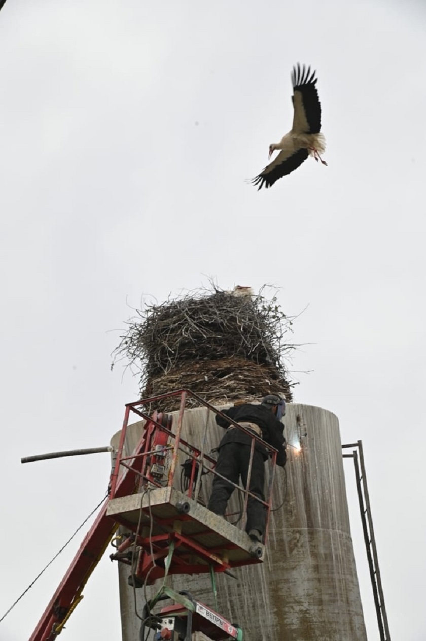 Сегодня, 12 мая, сотрудники Калугаоблводоканала приступили к ремонту покосившейся водонапорной башни. Рабочие планируют срезать верхний бак и сделать вместо него площадку, куда можно будет поместить гнездо.