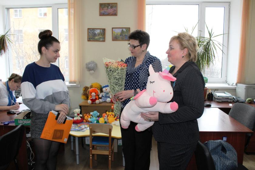 Со значимым событием молодую семью поздравили заместитель начальника Управления ПФР в Калуге Людмила Серебренникова и начальник отдела социальных выплат областного отделения ПФР Светлана Зайцева. Семье были вручены цветы и подарки.