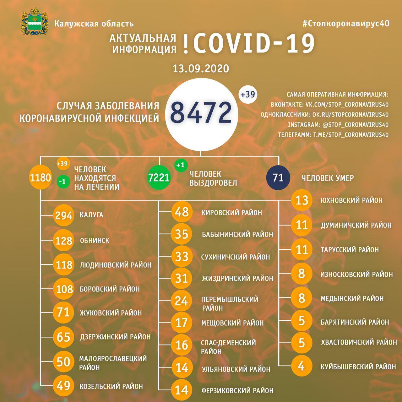 По данным оперативного штаба, на 13 сентября в регионе зафиксировано 8472 подтверждённых случая заболевания коронавирусом. Только за последние сутки – 39 человек.