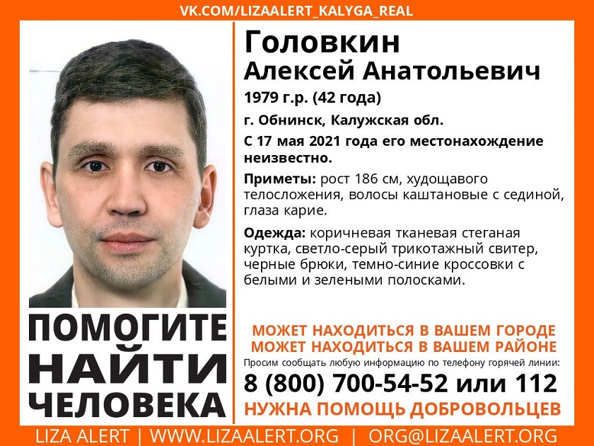 Если вы видели Алексея Головкина или знаете что-то о его местонахождении, сообщите об этом по телефону горячей линии 8-800-700-54-52. Звонок на территории РФ бесплатный.