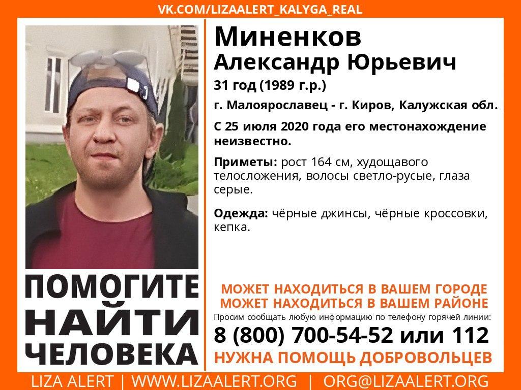 С 25 июля неизвестно местонахождение Александра Юрьевича Миненкова, 31 год.