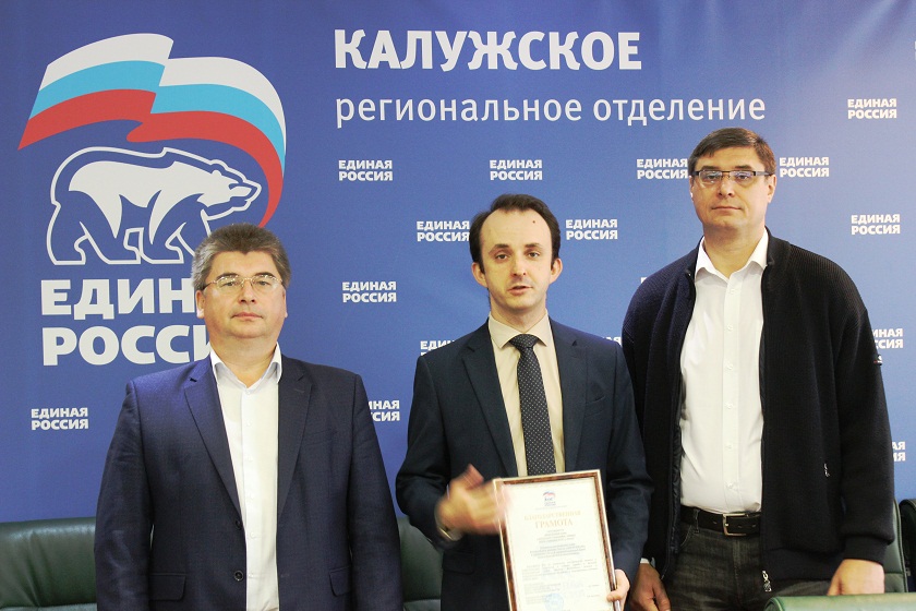 В Малоярославецком районе заместитель Секретаря регионального отделения Партии, секретарь местного отделения партии «Единая Россия» Александр Ефремов вручил диплом III степени за победу на федеральном этапе в ЦФО в номинации «Сельский музей» и призовой сертификат на сумму 200 тысяч рублей историко – краеведческому музею Ерденевской средней школы.