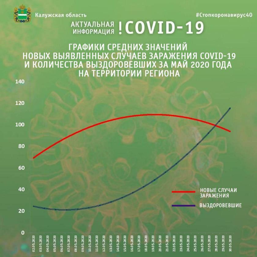 Из приведённых графиков средних значений новых выявленных случаев заражения COVID-19 и количества выздоровевших за май на территории региона видно, что ситуация постепенно нормализуется.