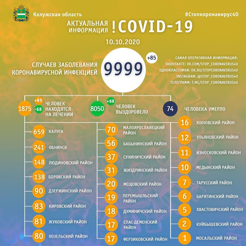 Данные оперативного штаба по коронавирусу в Калужской области на 10 октября.