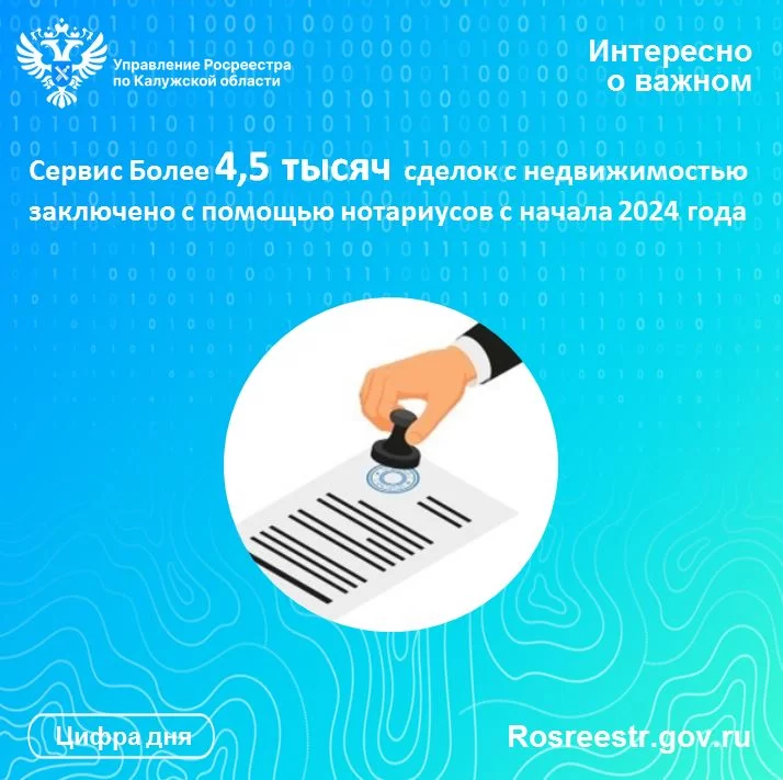 «С начала года мы отмечаем незначительное уменьшение нотариально удостоверенных сделок по сравнению с предыдущим годом. При этом общее количество зарегистрированных прав сократилось на 8,5%. При участии нотариусов калужане получают качественные услуги ведомства в рамках учетно-регистрационной деятельности в сокращенные сроки, не превышающие в среднем одного дня»