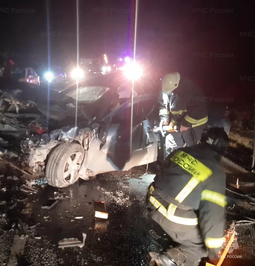 На место ДТП прибыли дорожные полицейские, бригада скорой и пожарной. Сообщается о нескольких пострадавших. Их количество и состояние здоровья не сообщается, однако на фото с места происшествия видно, что автомобили сильно деформированы.
