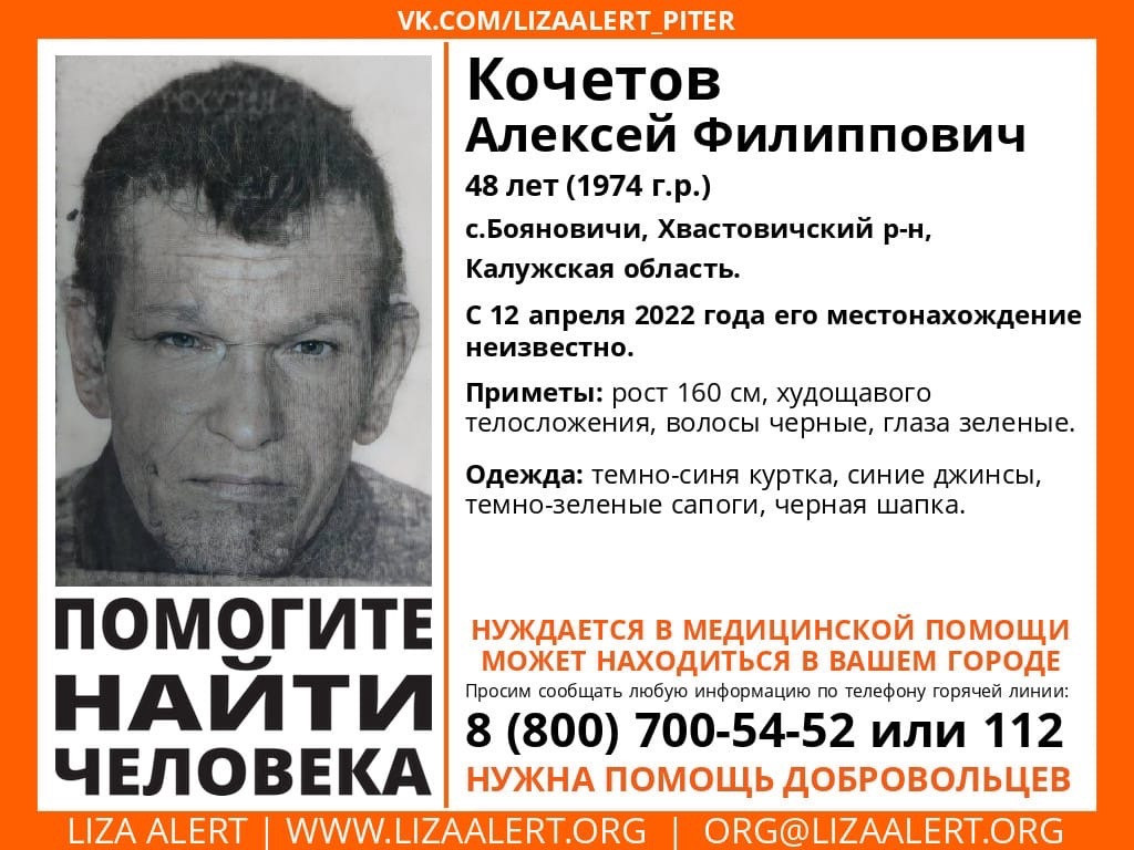 В своей публикации поисковики описали внешность и одежду пропавшего. А также указали, что мужчина нуждается в помощи медиков.