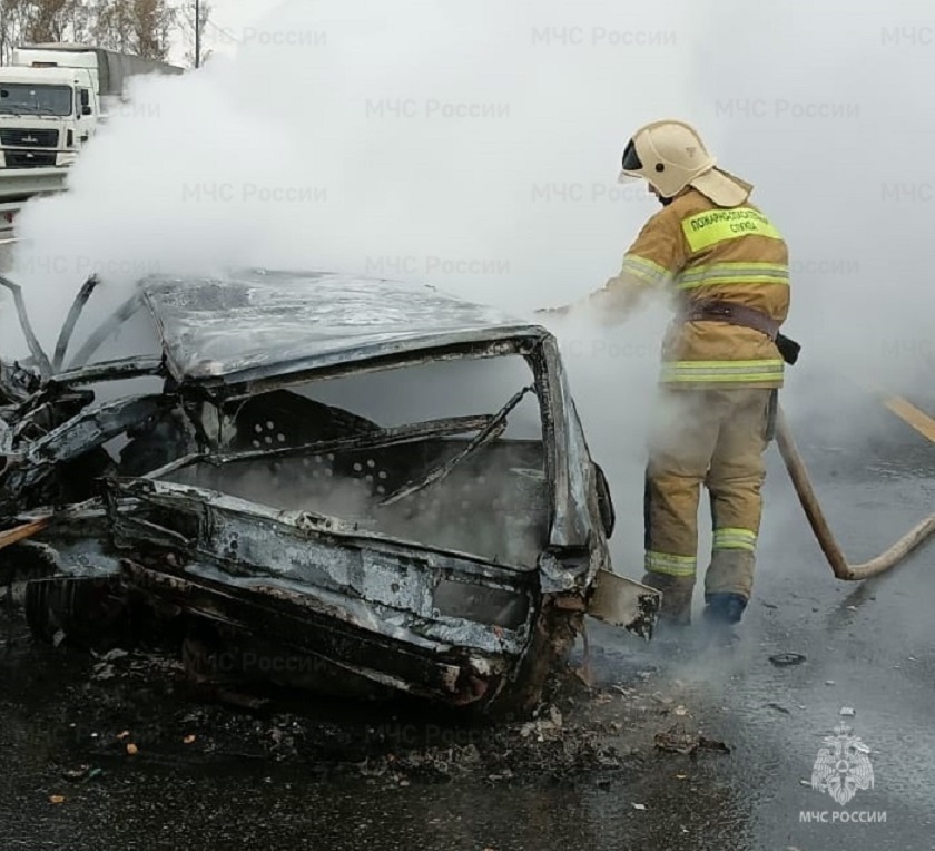 По данным ГУ МЧС России по Калужской области, около половины двенадцатого на 146 км дороги «М-3 Украина» столкнулись два автомобиля: «ВАЗ 2109» и «Kia». В результате столкновения отечественный автомобиль полностью сгорел.