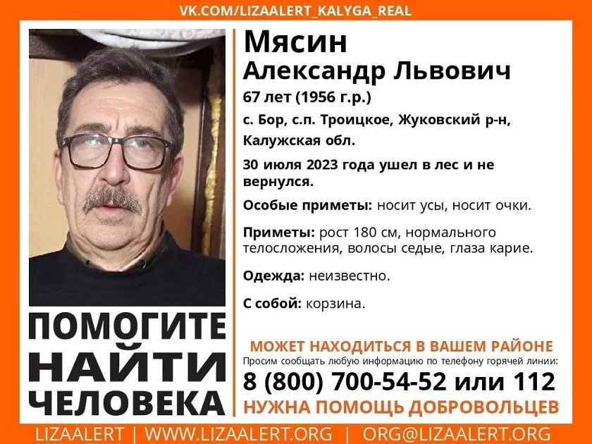 Как указано в ориентировке поисково-спасательного отряда «ЛизаАлерт», мужчина высокий – 180 сантиметров, нормального телосложения, с седыми волосами и карими глазами. Из особых примет – усы и очки. Одежда, в которой потерявшийся покинул дом, неизвестна, однако при себе он имеет корзину.