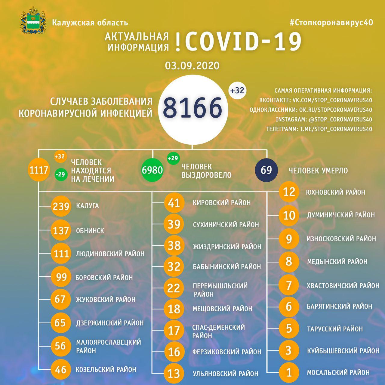 В нашей области за последние сутки подтверждено 32 новых случая заражения. Таким образом всего в области заразились инфекцией с момента начала ее регистрации медиками 8166 человек.