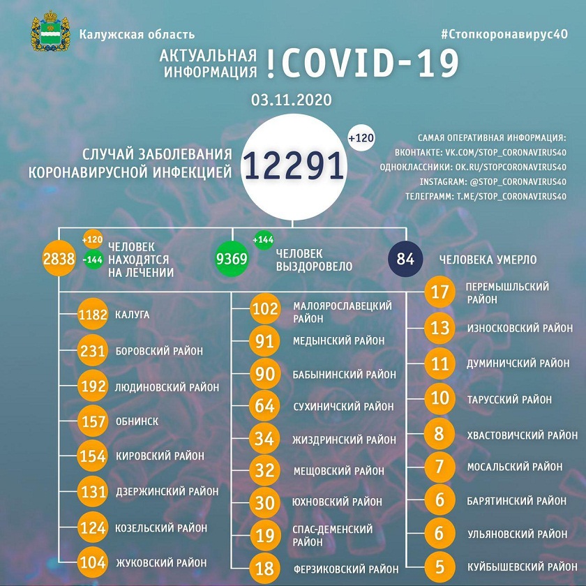 За все время пандемии в регионе был выявлен 12 291 подтвержденный случай заболевания. Из них за последние сутки 120 заболевших.