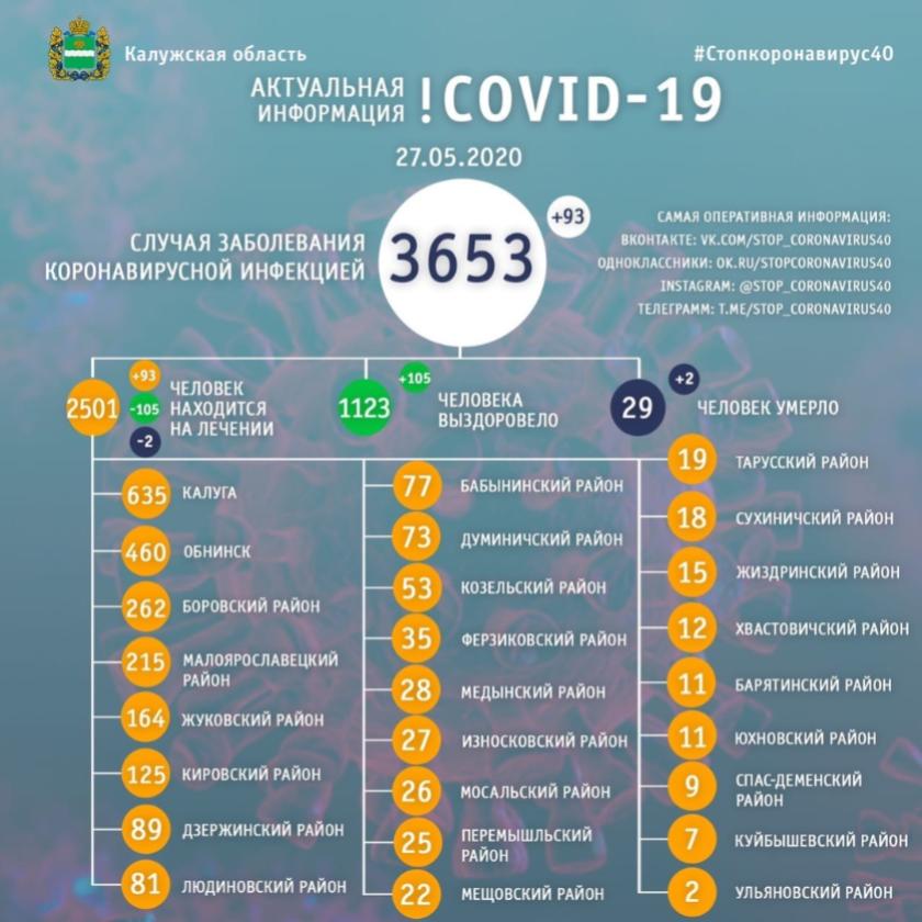 Два новых подтверждённых случая: житель Думиничского района 1937 года рождения и житель Бабынинского района 1938 года рождения.