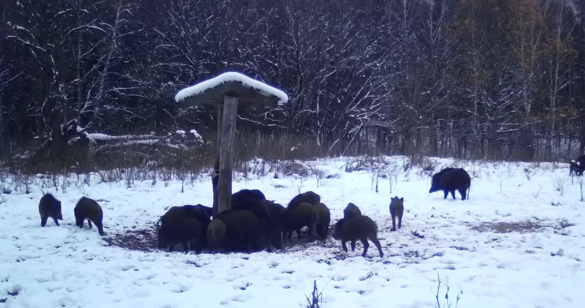 «Основу популяции кабанов составляют маточные стада – группы из взрослых самок и их разновозрастного потомства. Небольшое стадо может состоять всего из 6-10 особей: взрослой самки и её поросят этого года рождения. Но часто 2-3 самки объединяются вместе, к ним могут присоединяться их уже подросшие 2-3 летние детёныши – и тогда численность маточного стада может достигать 20-25 особей. А вот крупные взрослые самцы – их называют секачами – держатся отдельно», - рассказала старший научный сотрудник заповедника Елена Литвинова.