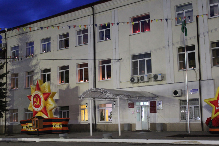 Одновременно с этим на пустой площади перед мемориалом «Танк» было выложено число 75 из горящих лампадных свечей. Такая акция проводится в медынском парке Воинской и трудовой славы ежегодно, но в этот раз - без присутствия людей в связи с пандемией коронавируса.