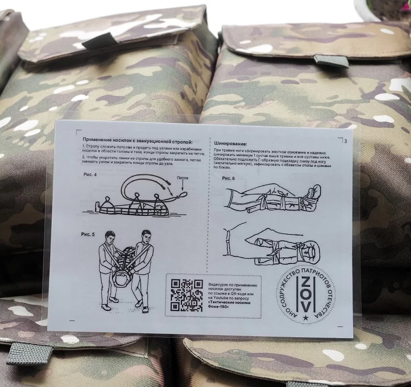 Просьба о создании мобильных тактических носилок бескаркасного типа поступила от участвующих в спецоперации нашей армии на Донбассе. За осуществление идеи взялись добровольцы федерального волонтерского движения «Золотые руки ангела» при поддержке АНО «Содружество патриотов Отечества ЗОВ», благотворительного фонда «Белый Дом» и АНО «Старт в будущее». В результате родилась тканево-стропная модель, аналог которой применялся в Афганистане, во Французском Иностранном легионе. Конструкцию доработал участник двух чеченских войн Фома Киняев, и она успешно прошла испытание в боевых условиях. Носилки окрестили «Фома 180». Они имеют небольшой вес, компактны. В одном мотострелковом отделении в восемь человек, например, санитар и стрелок за 35 секунд после получения бойцом ранения, могут его спеленать с помощью таких носилок в кокон и перенести в условиях многоэтажного здания, подъезда дома, пролома в стене или заборе, траншеи, окопа и быстро эвакуировать в желтую зону, где не стреляют, чтобы оказать первую помощь и затем, в течении «золотого часа», важного для спасения жизни раненого, доставить его в зеленую тыловую зону в госпиталь.