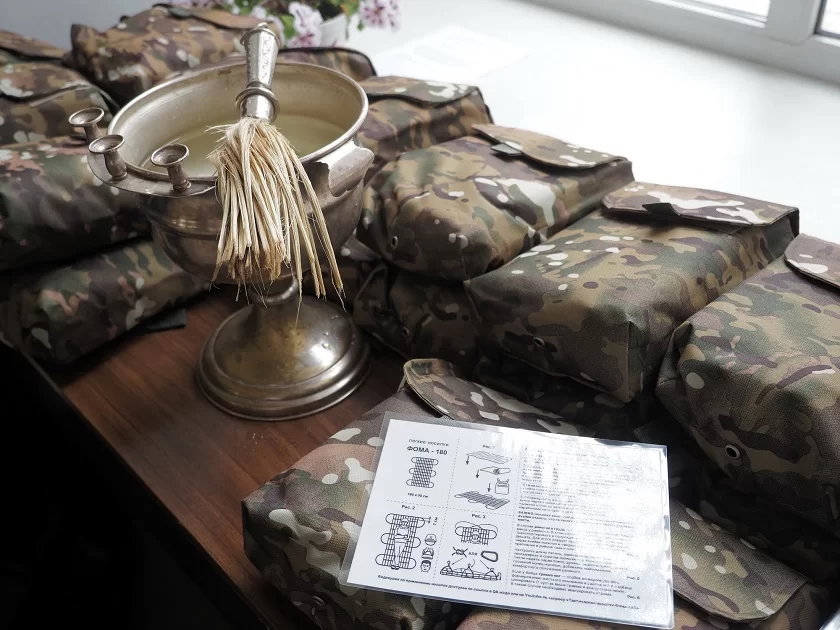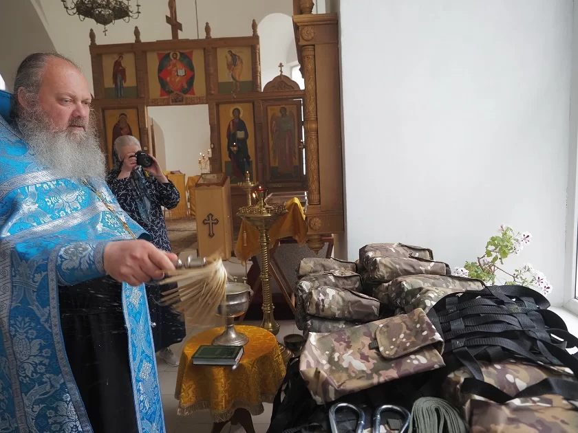 После молебна носилки были переданы спецназу ВДВ для отправки в зону спецоперации.
