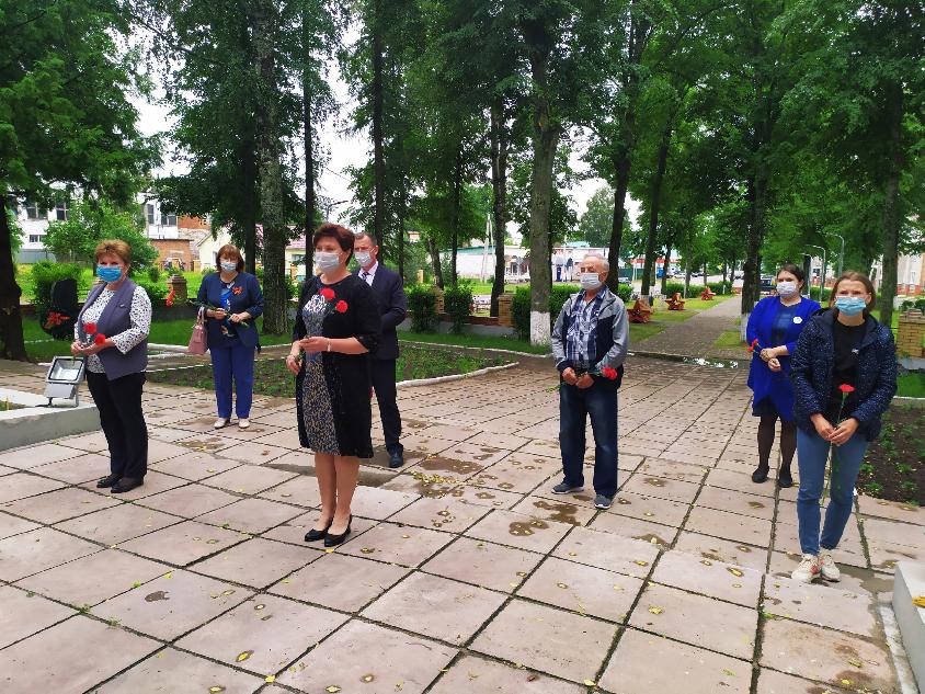 В память о героических событиях прошедшей войны глава МР «Хвастовичский район» Любовь Ефремкина, лидер общественного мнения, директор МКОУ «Теребенская средняя школа» Татьяна Ипатова, и.о. главы администрации СП «Село Хвастовичи» Степан Кондратюк, председатель Хвастовичского районного Совета ветеранов Алексей Петрович Трахачев, руководитель Местного отделения Партии «Единая Россия» Марина Анциферова, волонтёры Победы и члены Молодёжного совета зажгли свечи и возложили цветы к Ввечному огню на воинском захоронении «Братское кладбище» в селе Хвастовичи.