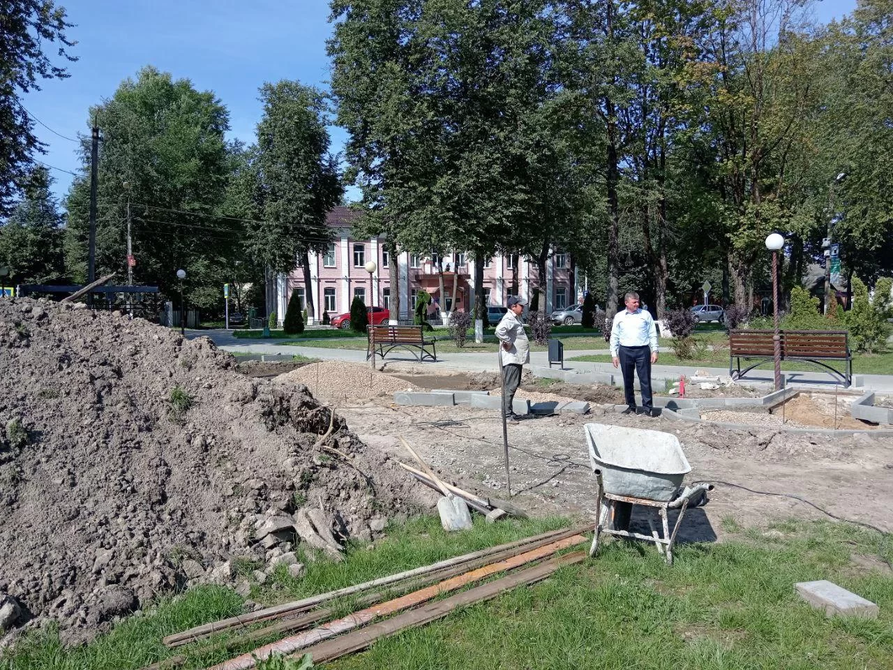 В настоящее время подрядчики приступили к укладке бордюров и подготовке основания для мощения брусчаткой. В дальнейшем здесь появятся тематические арт-объекты и новые зеленые насаждения.