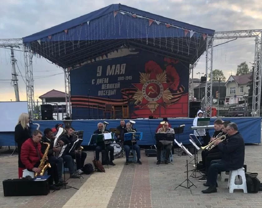В этот вечер здесь же, на площади Победы, играл городской духовой оркестр. Мелодии военных лет в живом исполнении многократно усилили эмоциональное воздействие постановки.