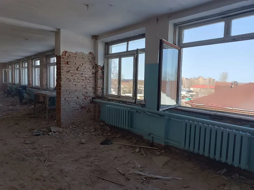 Начальные классы продолжают обучение в одном из зданий школьного комплекса. Старшие временно обучаются дистанционно до завершения необходимых согласований и подготовительных работ.