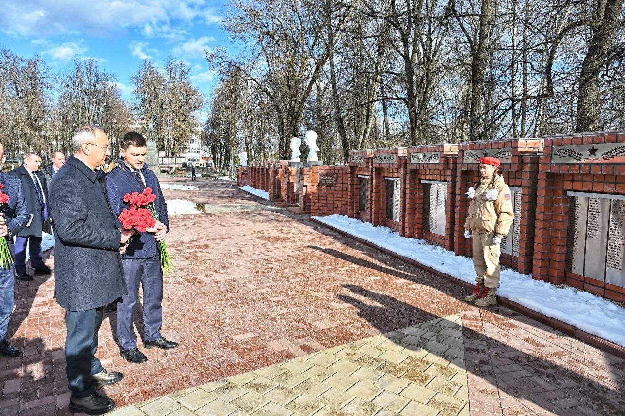 Глава региона вместе с главой администрации района Стефаном Переваловым возложили цветы на Аллее Героев, где увековечены имена участников Великой Отечественной войны, локальных военных конфликтов и специальной военной операции.