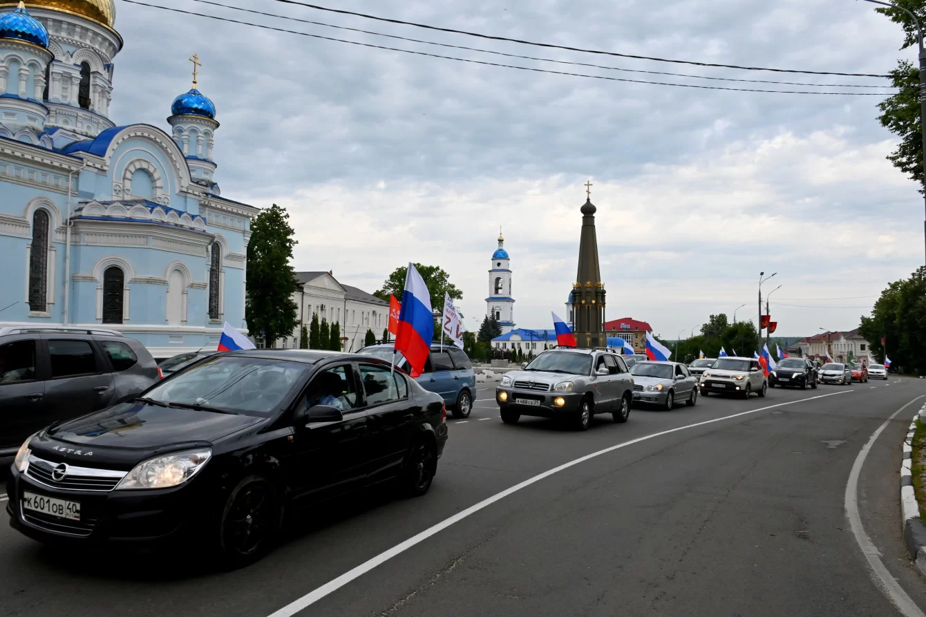 Здесь представители молодёжных организаций выстроились буквами Z и V, а также растянули двенадцатиметровые триколоры.