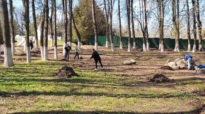 Объектом для наведения порядка стал парк 1812 года и овраг, расположенный рядом с ним. Ребята очистили парк от сухих листьев и мусора.