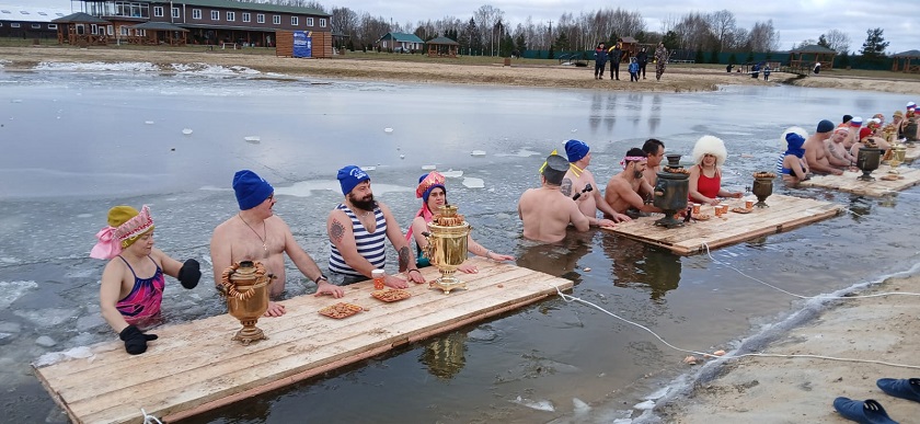Участники, несмотря на бодрящий ветерок, продемонстрировали свою закалку и спортивный дух, окунувшись в ледяную воду. Моржи показали выносливость, установив рекорд России «Самое массовое чаепитие в проруби». Около 30 смельчаков 15 минут пили чай из антикварных самоваров.