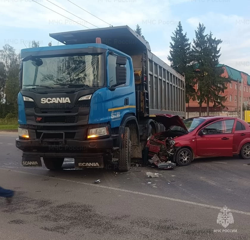 Как сообщают в региональном управлении МЧС, на улице Московская столкнулись автомобиль марки «Шевроле» и фура марки «Скания». В происшествии есть пострадавший. На фото видно, что передняя часть легкового автомобиля сильно повреждена.