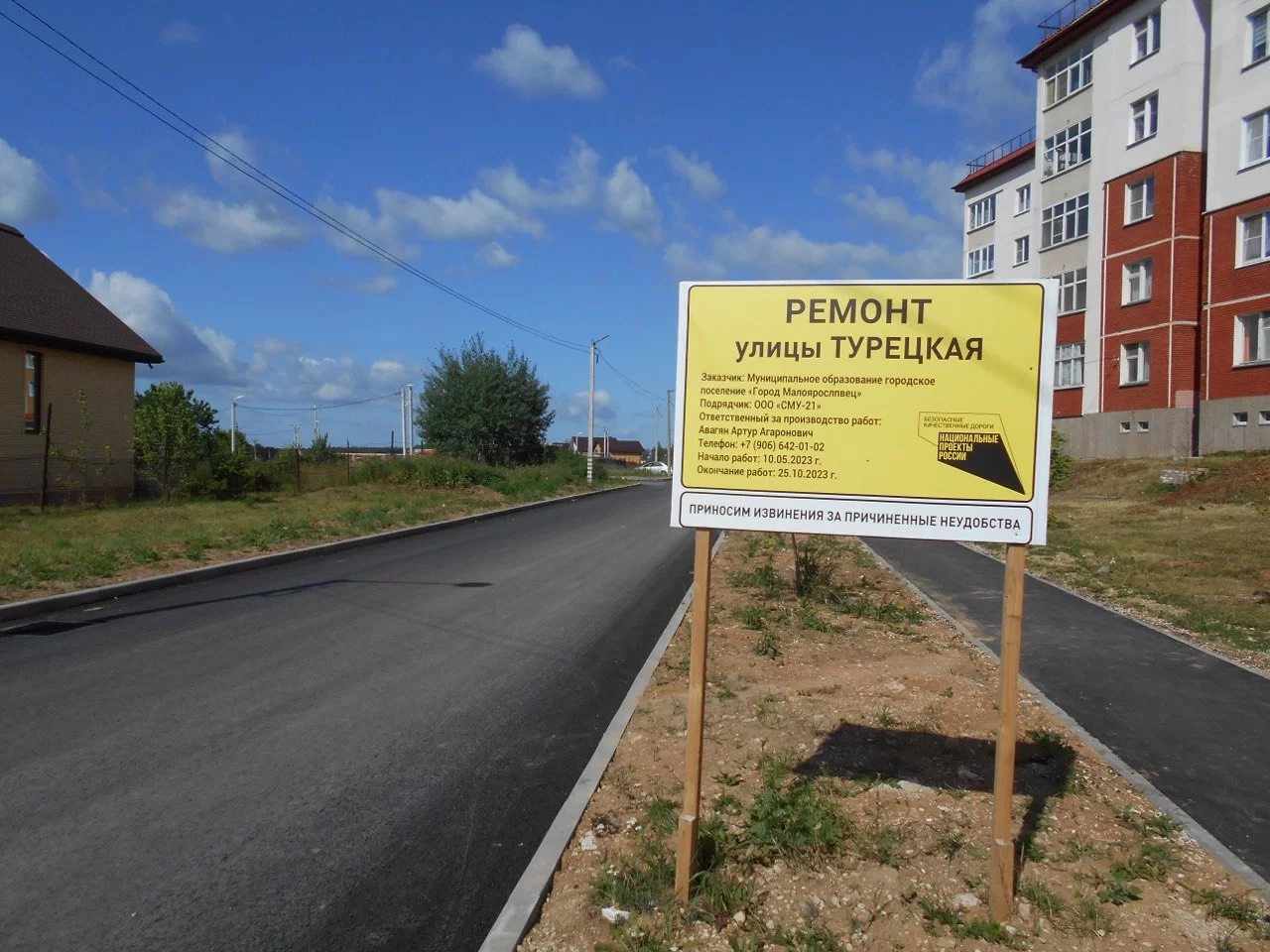 В региональном минтрансе рассказали, что в Малоярославце был уложен асфальт на улицах Турецкая, Халтурина и Кирова.