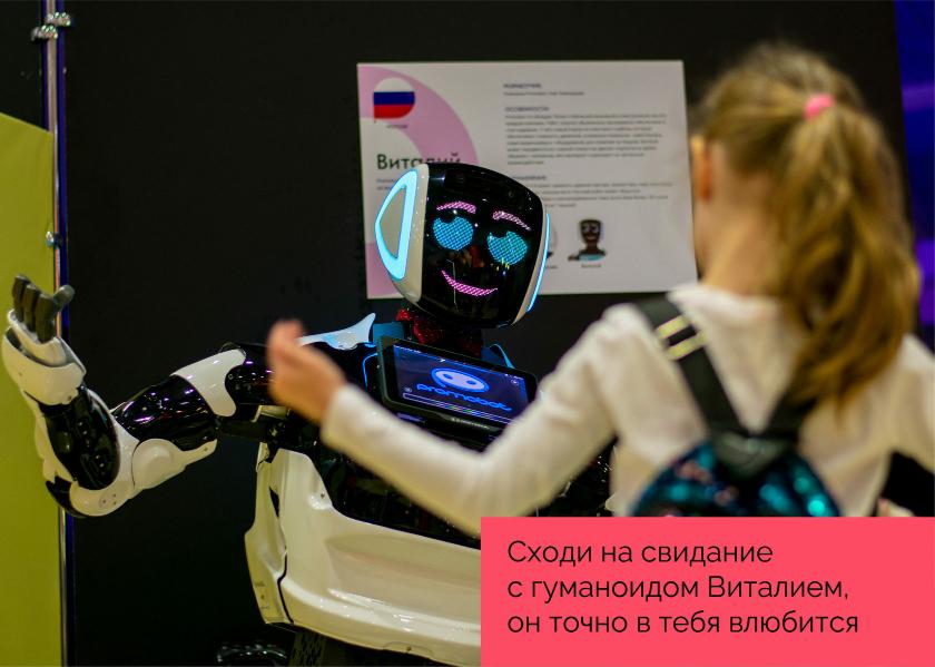 Здесь покажут модели, которые участвовали в выставках в Лас-Вегасе, Пекине, Берлине Милане и Токио, многие роботы в первые в России. В числе экспонатов французский робот Рити, робот-паук из книги рекордов Гиннеса, самый пластичный в мире робот Пеппер, робот-актёр и другие. На выставке можно будет познакомиться с роботами-помощниками, которые готовы выполнять за человека работу по дому, например, помыть окна или подсказать рецепт блюда. Взрослые и дети смогут принять участие в мастер классах, собрать карманного робота, нарисовать космический портрет. Вход на фестиваль платный для для взрослых и для детей старше трёх лет.
