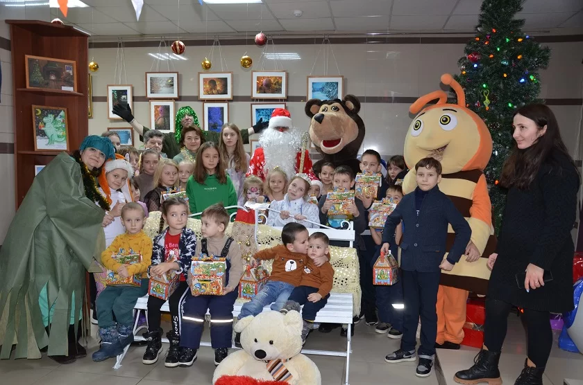 С окончанием спектакля праздник не закончился. Герои представления спустились со сцены и вместе с юными зрителями поучаствовали в настоящей игровой программе. Здесь были и стихи, и танцы, и забавы, и конкурсы, и, конечно, сладкие подарки. Детей участников СВО, не попавших на праздник, Дед Мороз со Снегурочкой поздравят на дому.
