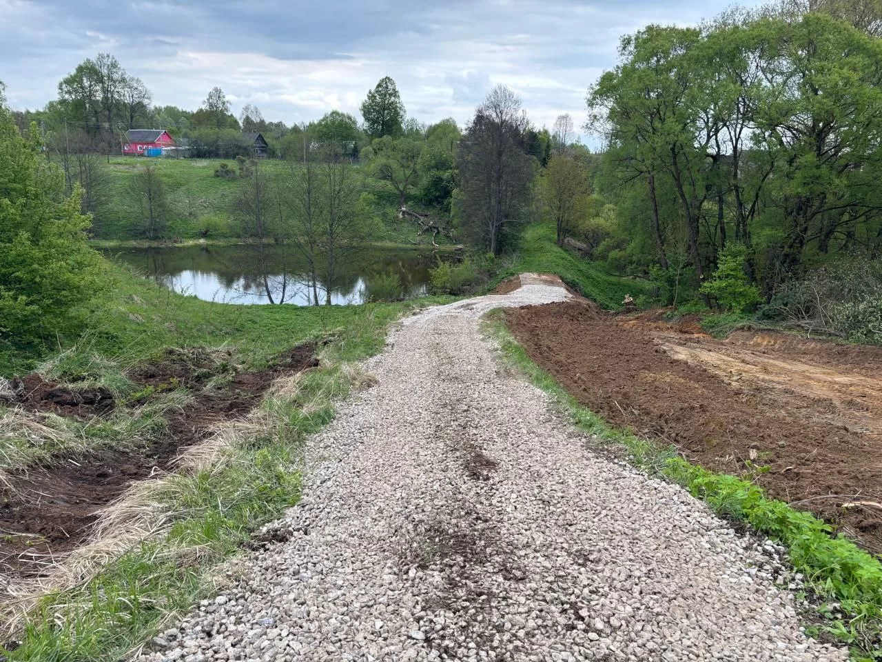 Дорожные ремонт также сейчас проводятся в деревне Самсоново, на участке длиной почти полкилометра. Здесь организованы кюветы, а также уже уложен песчаный подстилающий материал дороги. В скором времени проезжая часть будет отсыпана щебнем.