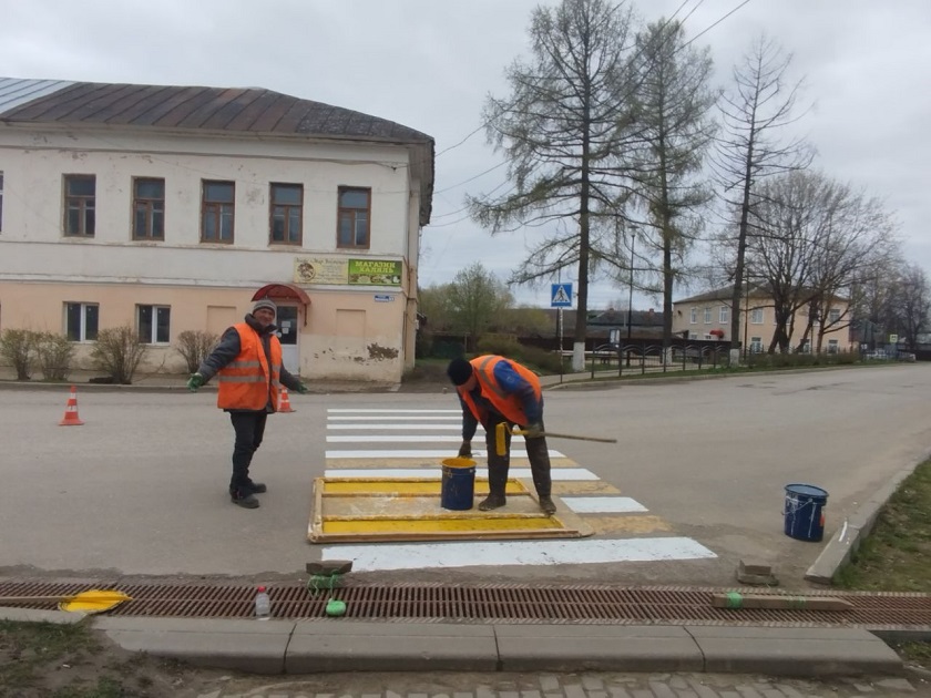 В Мосальске обновили пешеходные переходы и установили светофоры