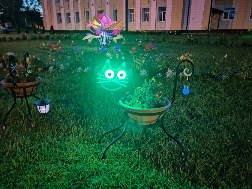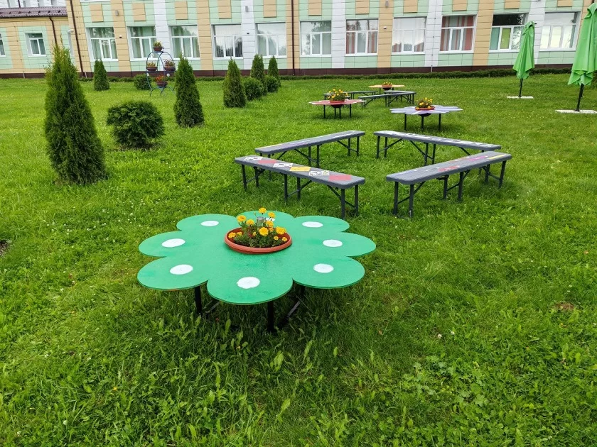 Кроме того, на школьном участке появились тематические скамейки, конфигурация которых может меняться в зависимости от количества пользователей. Они имеют разный познавательный характер. Мотивируют к изучению языков, музыки, геометрии и других школьных предметов. Здесь же расположились малые архитектурные формы - столики - цветочки. Изюминкой проекта стала садовая подсветка, которая появилась по всему пространству, ее установили на садовые сооружения. По вечерам, когда светильники включаются, во дворе школы звучит музыка - симфонические произведения. Лейтмотив плейлиста — «Вальс цветов» Чайковского.