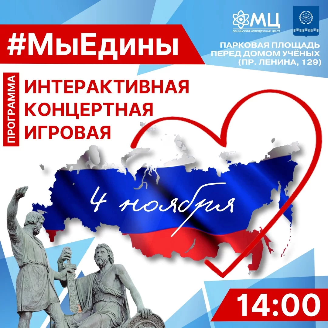В субботу, 4 ноября, страна будет праздновать День народного единства. В Обнинске главной площадкой станет площадь перед Домом ученых.