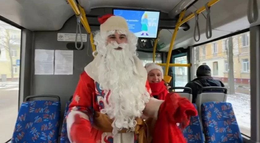 В салоне работала «волшебная колесница» с Дедом Морозом и Снегурочкой. Во время рейса дети рассказывали стихотворения, взрослые делились своими достижениями в уходящем году. Вместе пассажиры исполнили песню «В лесу родилась ёлочка». Всем участникам акции вручили сладкие презенты и транспортные карты.