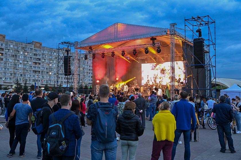 С концертной программой выступил коллектив проекта «Десять песен атомных городов», который реализуется в рамках программы «Территория культуры Росатома» и объединяет сотни талантливых людей разных возрастов и профессий, живущих и работающих в 21 «атомграде». В концерте также приняли участие заслуженная артистка России Лидия Музалёва и кантри-группа «Весёлый дилижанс» из обнинской ДШИ №1.