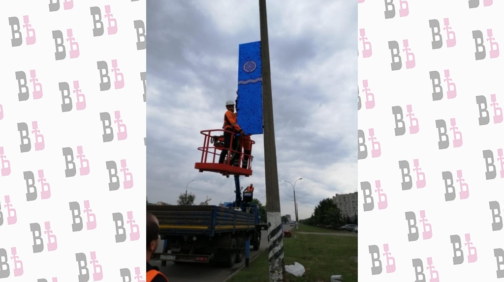 Наукоград готовится к празднованию Дня города, и на улицах начали устанавливать «флаги» нового образца – из пайеток.